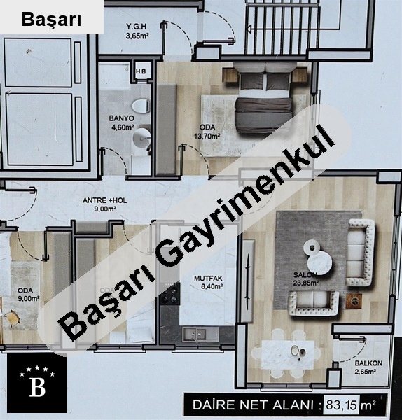 Başarı'dan 19 mayis mh konumda balkonlu aydinlik 83 m² net 3+1