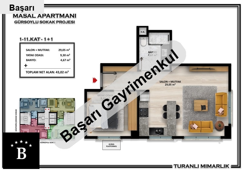 Başarı'dan her zaman talep gören lokasyonda 1+1 yatirim dai̇releri̇