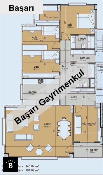 m² (Brüt) : 181